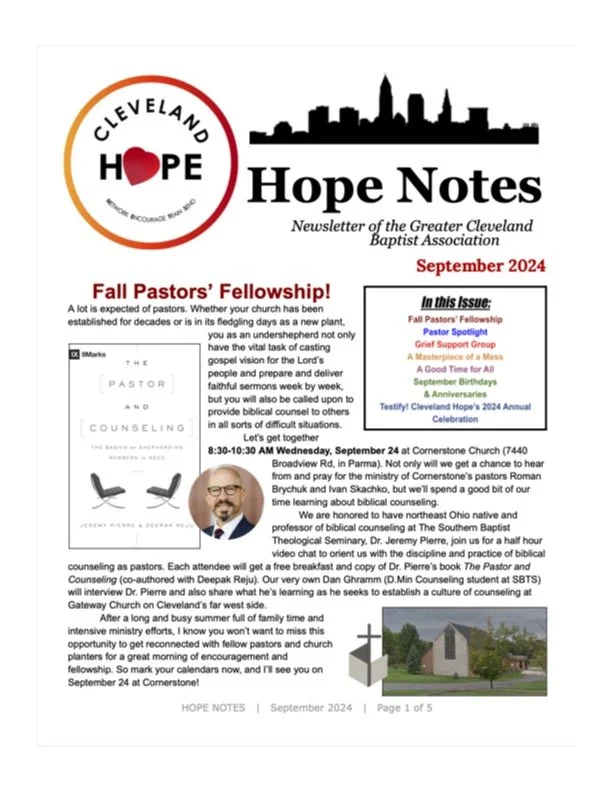 Darin Avery August 30, 2024 Hope Notes | September 2024 Darin Avery August 30, 2024 Fall returns this month! Check out what's going on around Cleveland Hope with the latest edition of Hope Notes.