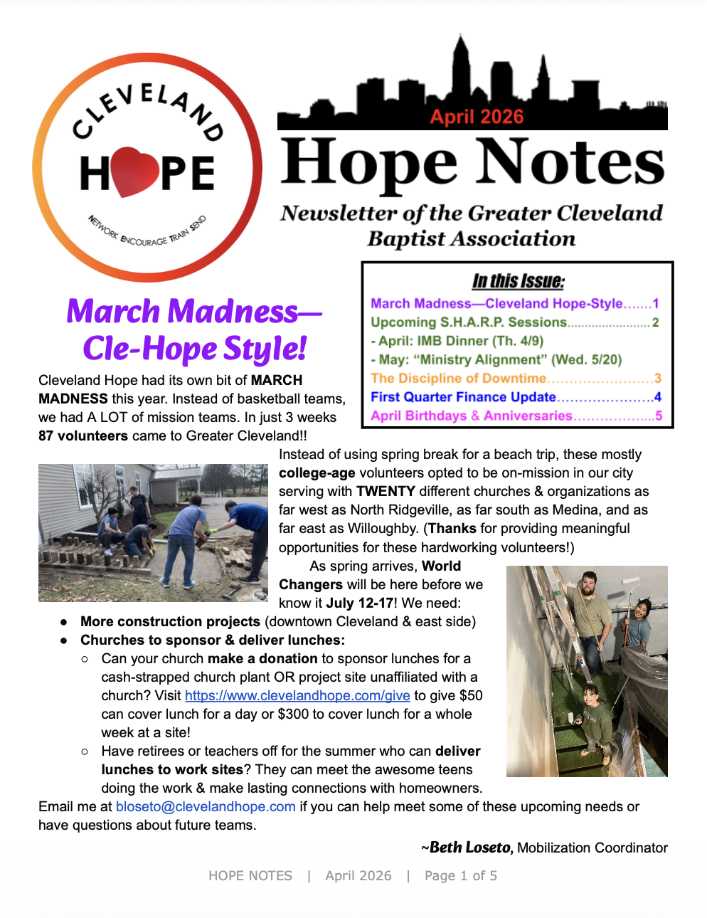 Thanks for stopping by the Hope Notes page! The first quarter of 2026 has come and gone, and things are only going to get busier around Cleveland Hope as summer approaches.